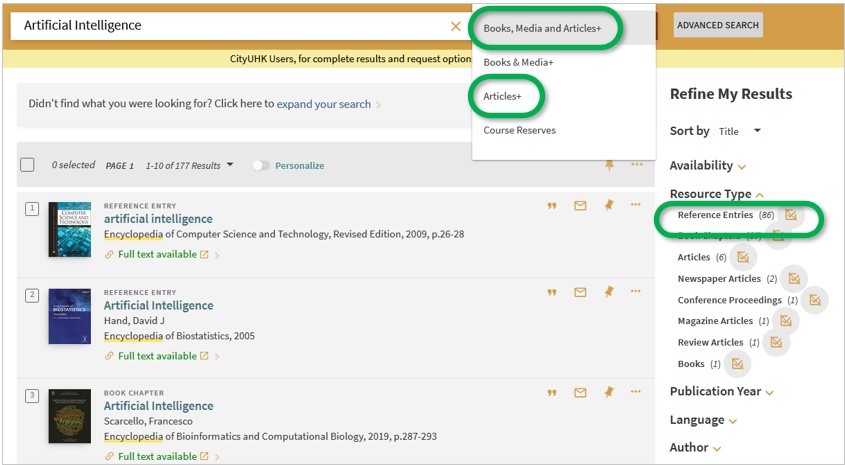With CityUHK LibraryFind, you can now find articles or reference entries across the e-dictionaries or e-encyclopedias subscribed by the Library: